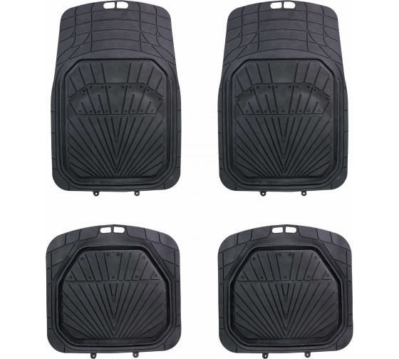 Ковры в салон AIRLINE с высоким бортиком, ПВХ, универсальные, черные, комплект 4 шт. Позволяют дольше сохранять чистоту в салоне машины, а также предохранять ворсовую половую обшивку автомобиля от появления загрязнений. Высокие бортики изделий предотвращают протекание влаги или жидкой грязи за пределы коврика. Мелкопористый полимер не пропускает жидкость, а также легко очищается от появившихся загрязнений.