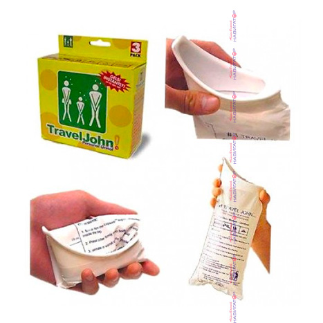 Карманный писсуар 0,8 л, универсальный – подходит для мужчин, женщин и детей. В комплекте 3 штуки и гигиенические салфетки.