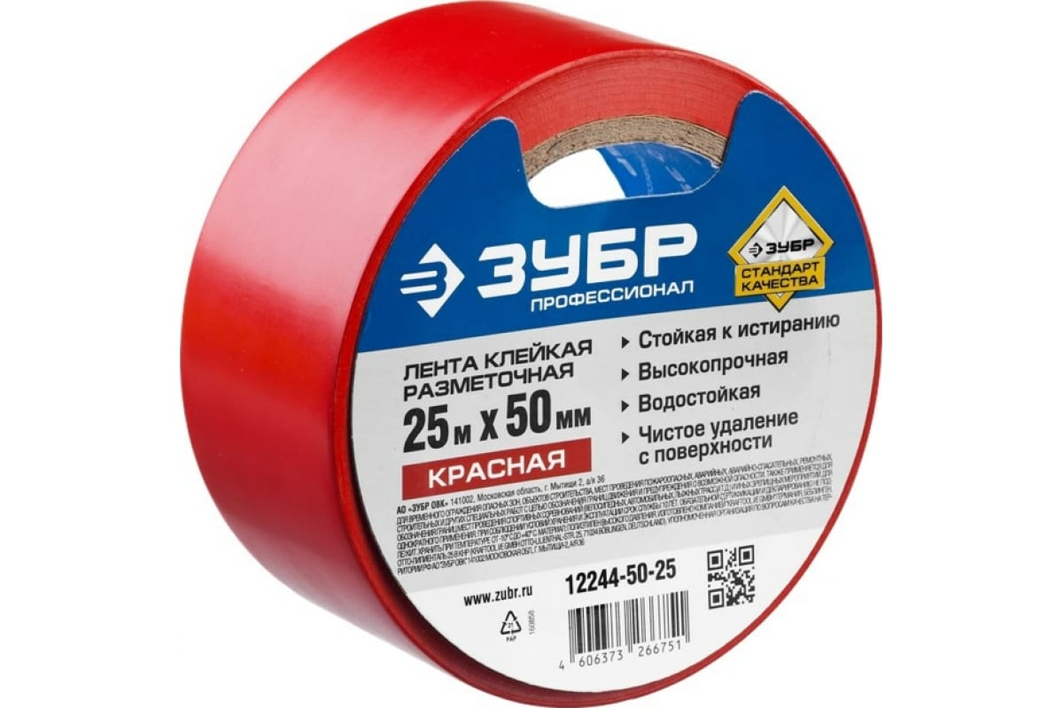 Технические характеристики клейкой ленты ЗУБР цвет красный, 50мм х 25м: